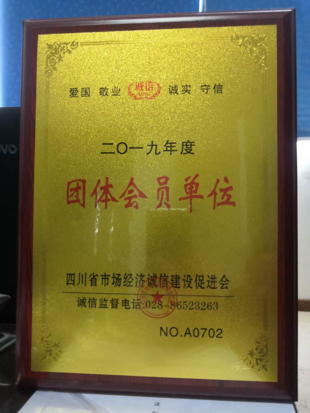 我公司獲得2019年度四川省四川經(jīng)濟(jì)誠信建設(shè)促進(jìn)會團(tuán)隊會員單位認(rèn)